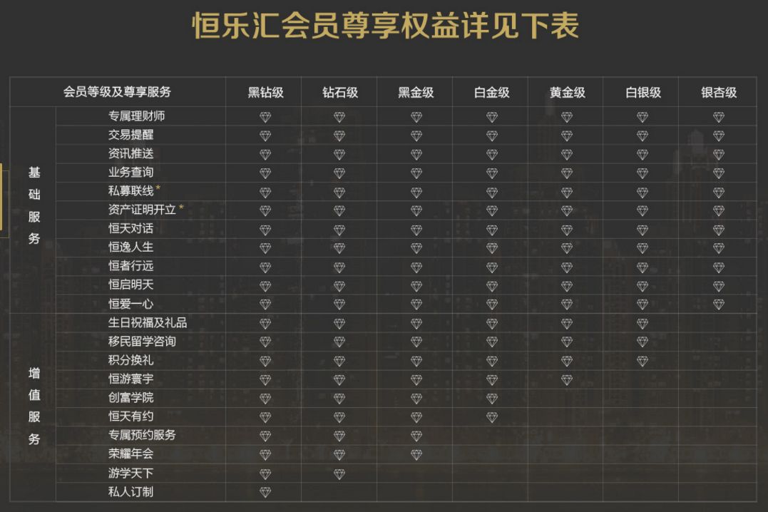 恒樂匯則為恒天財富高凈值客戶私享俱樂部,是集財富管理、客戶服務、增值服務、會員管理等媒介于一身的品質服務生態圈。 在為客戶財富保駕護航的同時,也致力于為客戶提供品類豐富的恒樂匯積分商城、豐富的圈層人脈資源以及高端的訂𓄧ཧ制活動等,注重突顯會員的尊貴身份和獨特的生活品味。