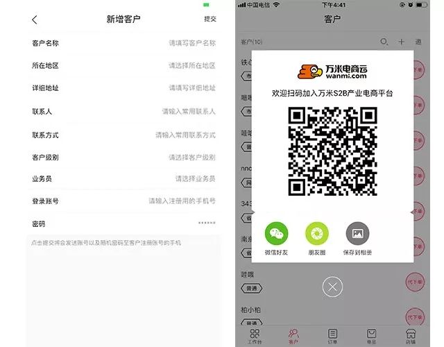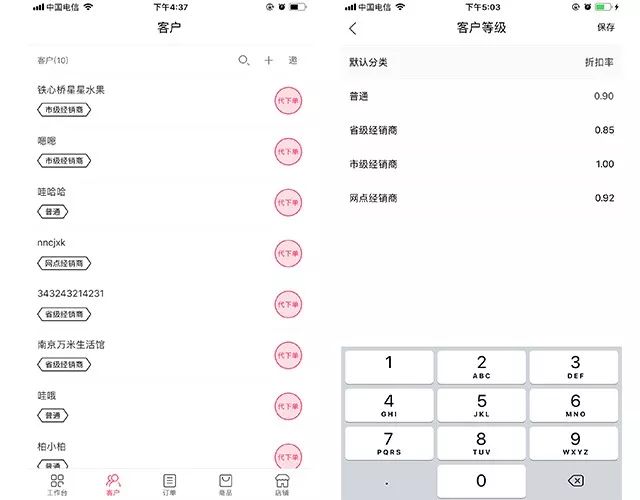 4、客戶管理也十分方便,商家可隨時調整客戶等級,保障🐓客戶可及時享受到最新的優惠政策,幫助ꦚ商家更好的維護客戶、推進業務;此外還可實現隨時隨地代客下單,輕松解決了客戶紙質訂單、電話下單、在外談生意時臨時下單等多個業務場景的問題,可避免錯單、漏單,全面提升了業務效率。