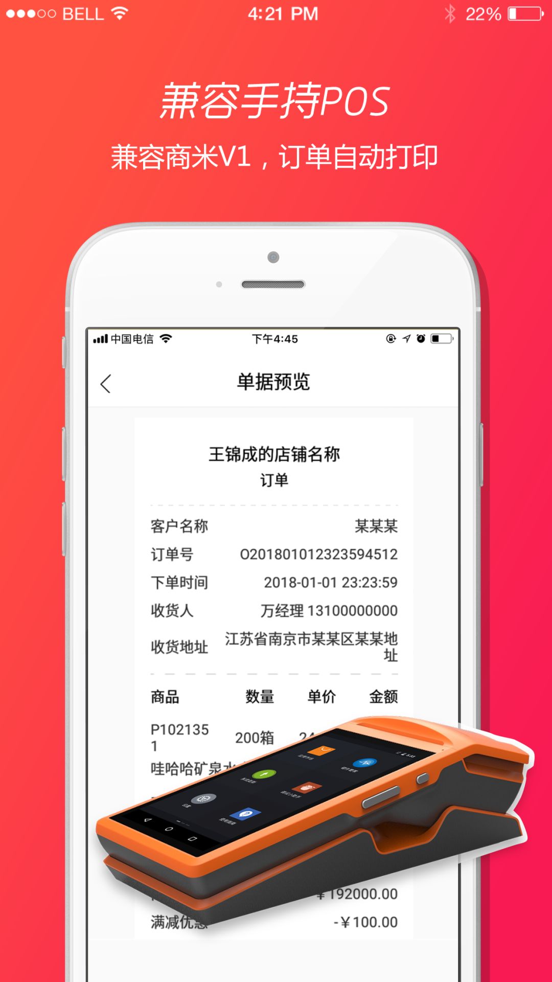 6、最后不得不說的一個優點,那就💯是云掌柜可完美兼容手持POS機,門店和網店可直接共用一臺設備;支持訂單打印、發貨單打印、還支持自定義打印模板,很酷吧?