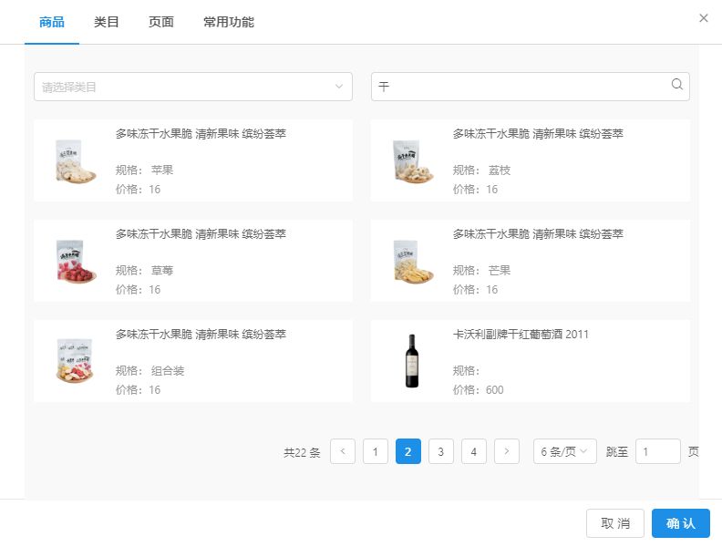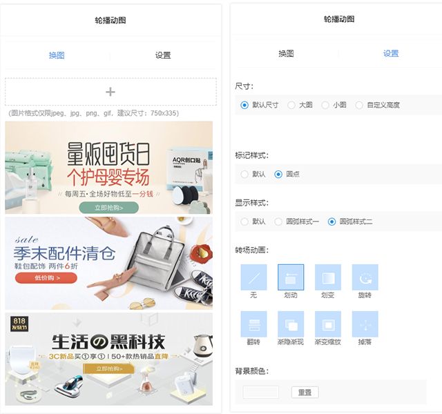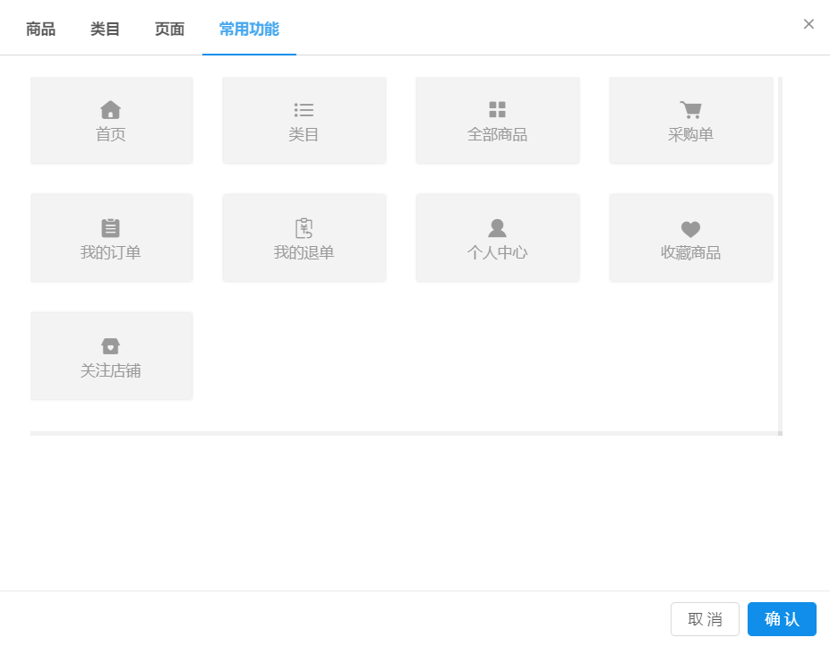 支持鏈接至商品、商品分類、營銷活動、文章頁、常用功能、自定義頁面、URL地址…
