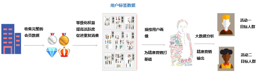 最后對用戶信息進行大數據分析,為精準營銷伏筆,以便提高用戶復購率及活躍度。