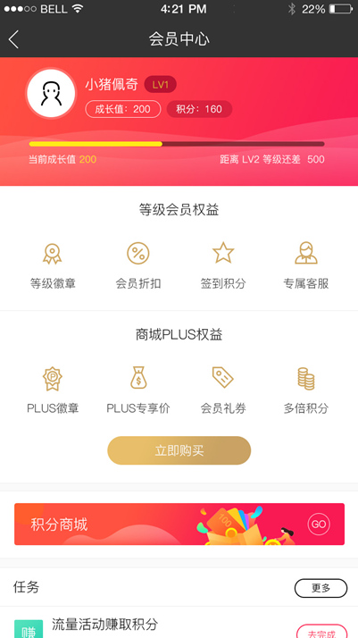 ① 將“會員體系”以及“會員權ไ益”可視化:以簡單明了的方ꦚ式向用戶展示:會員級別、所獲成長值、可行權權益、會員等級增長規劃等;