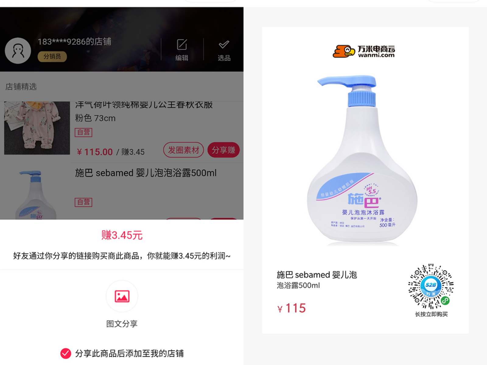 也可以對單個商品一鍵生成帶二維碼的分銷圖,消費者長按識別后即可進入你的小店。
