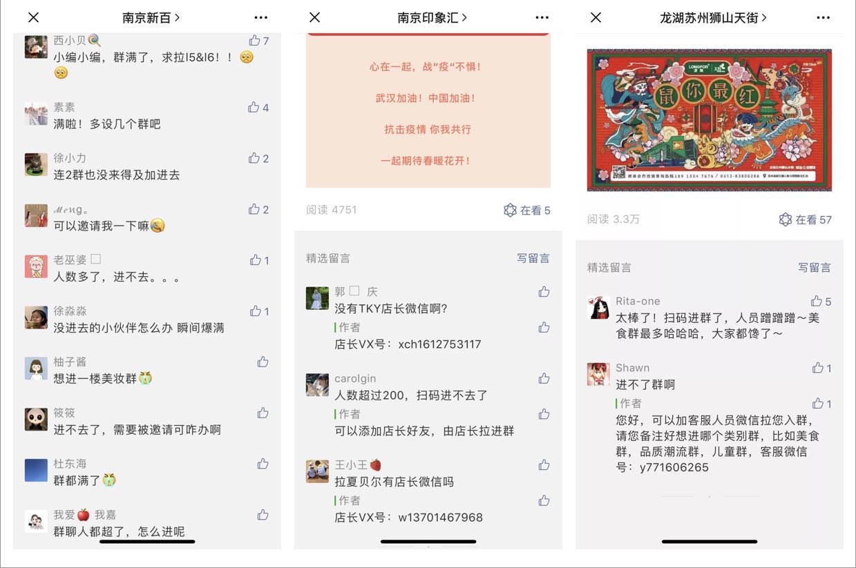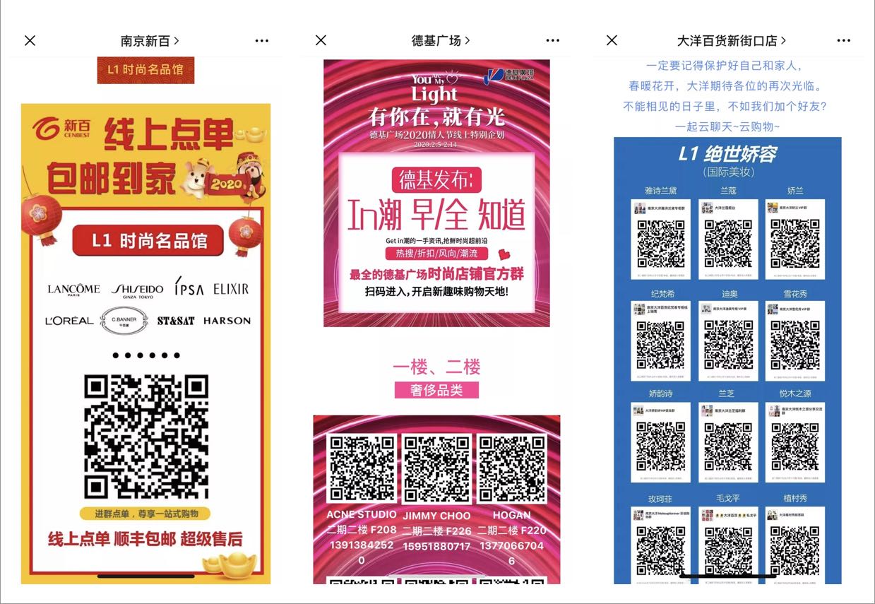 為減少暫停營業𝄹帶來的損失,部分沒有線上系統的購物中心開始組織商家通過組建微信群、添加個人微信的形式維護客💧戶,甚至直接導流至品牌官方渠道,進行線上帶貨及下單購買。并通過微信公眾號發布消息,告知消費者。