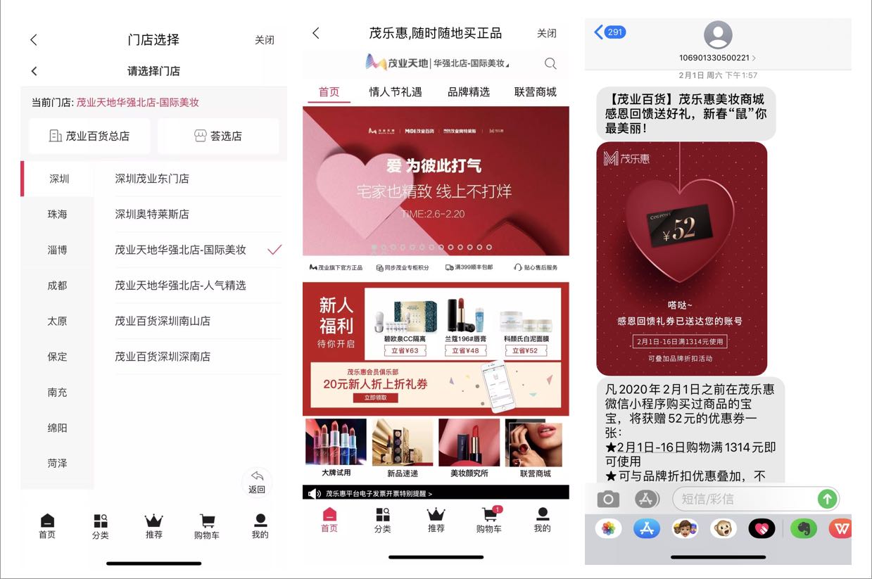 圖片來自茂樂惠APP、小程序及營銷短信截圖
