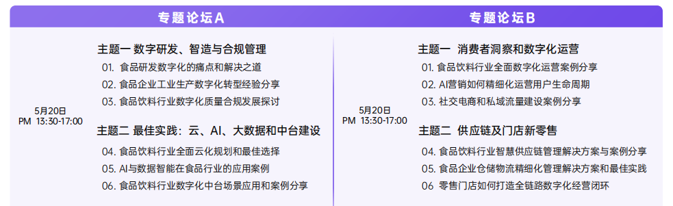 論壇邀請信息化領袖進行數字化轉型典范企業案例分享,分享高價值的創新理念和技術。站在巨人的肩膀上,可以看💦得更遠,開拓視野,關注行🐈業動態,依靠成功者的的經驗來定制自己的成功。論壇還設置了圓桌座談,想問的、想說的、想探討的,都可以在這里提出,🌠💙關于食品飲料行業數字化轉型的頭腦風暴期待您的參與。