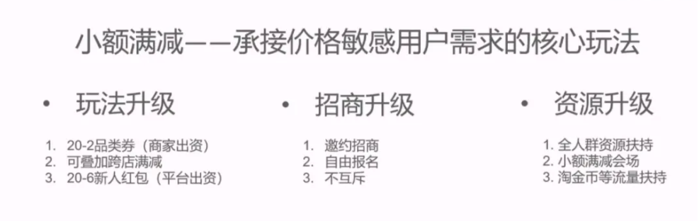 值得一提的是,為提升對價格敏感度高人群的轉化率,今年淘寶618還推出了滿20減2的小額滿減優惠(不循環),可與跨店滿減疊加。對于參加報名小額滿減的商家,淘寶平臺不僅提🅰供活動流量♌、全量人群流量、淘金幣流量扶持,還有專門的小額滿減會場。