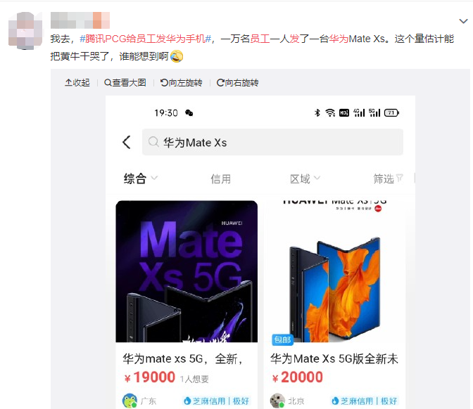 各企業大廠也在搶奪人才上花盡了心思,騰訊 PCG(平臺與內容事業群)花2億給員工發福利,人手一臺華為折疊屏手ജ機 Mate XS,每臺價值🦩 16999 元,火上熱搜,網友個個都成了檸檬精。
