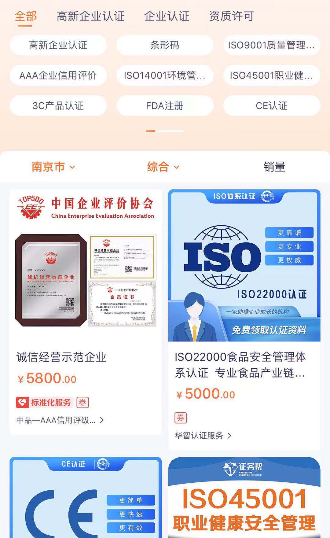 天眼企服為自營商家, 企業服務公司經過資質審核后可以入駐平臺成為商家,售賣的“商品”為各類虛擬的企業服務。當用戶在平臺搜索所需服務時,自營和入駐商家♋的商品都會顯示,供用戶自由選擇,利于形成良性的競爭機制。