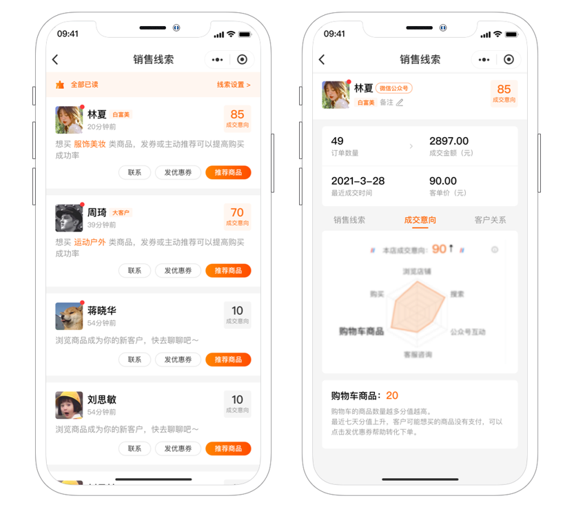在O2O交易場景下,線上線下智能導購角色的打通,可以說是讓平臺的銷售能力如虎添翼。通過大數據分析🌺,建立精準的客戶畫像,通過給客戶打標簽來標志客戶特征。導購員借助客戶標簽、客戶的喜好、近期所需等關鍵信息來進行精準導購,提高導購效率和銷售轉化率。