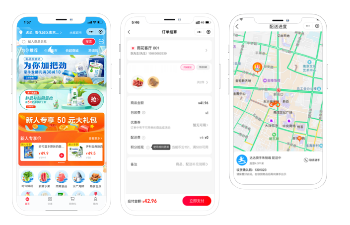用戶線上下單后,貨物送達方式可分為同城極速到家、到店自提、自提點自提、快遞到家。