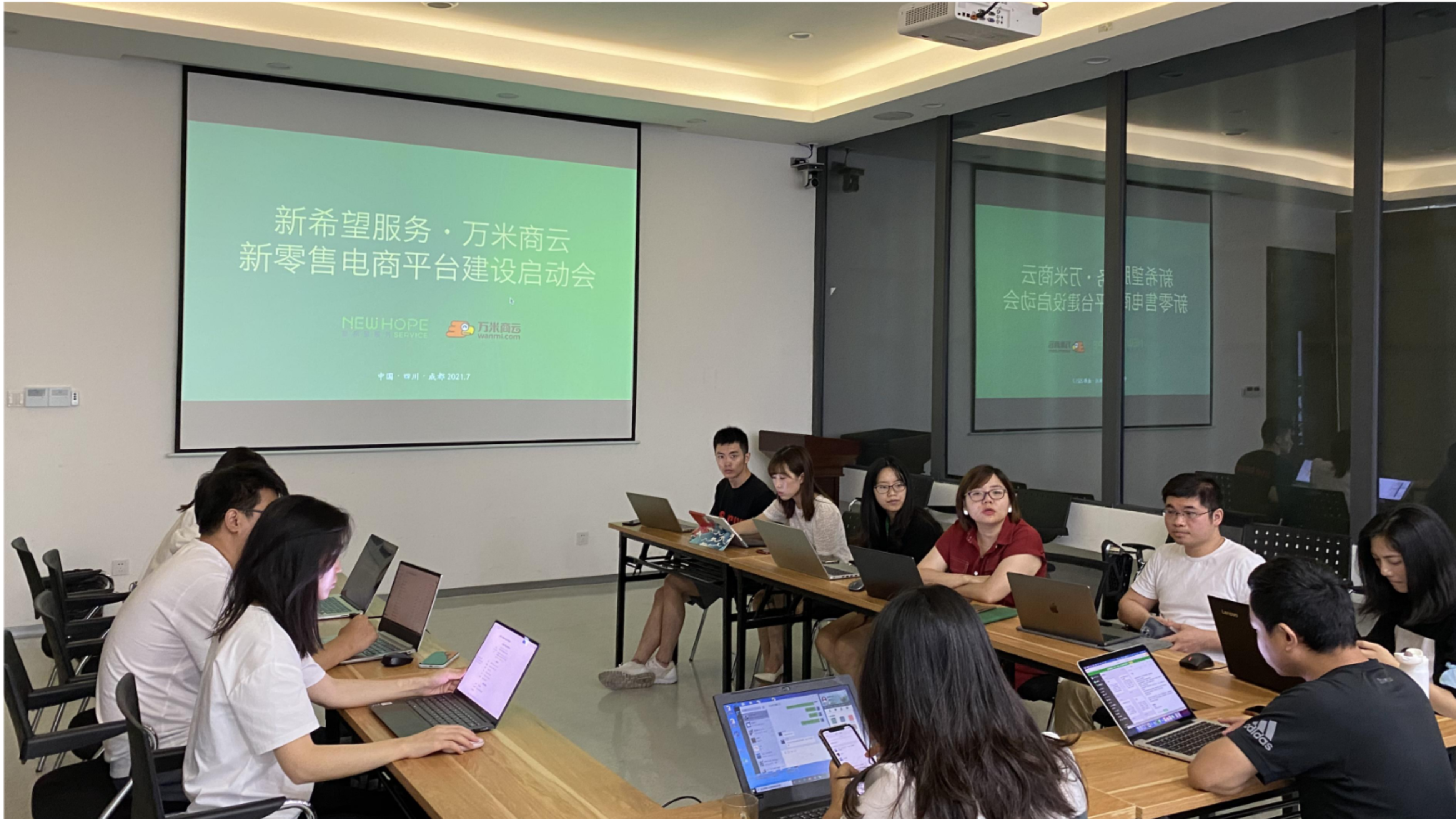 近日,新希望服務和萬米合作的新零售電商平臺項目正式啟動,雙方就項目內容設計、排期規劃等達成共識。