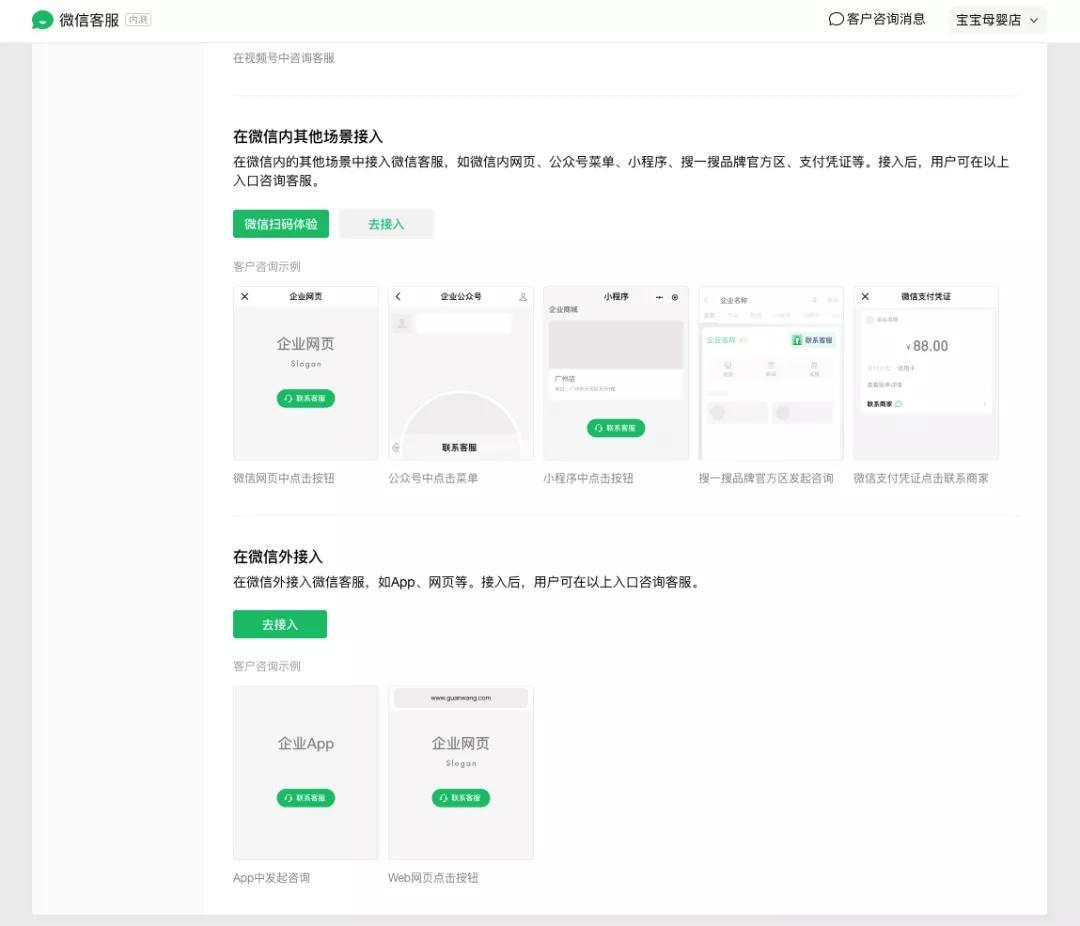 無論是微信內部的小程序、搜一搜、公眾號、視頻號、小卡片,還是微信外部企業app、官網,或是線下掃碼場景等,基本用戶日常可觸達的場景,都支持跳轉進「微信客服」,用戶可以發起咨詢🐈,企業可通過 API 接口回復消息,做好客戶服務及流量沉淀。