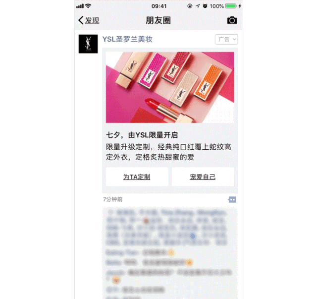 剛剛過去的七夕,除了看到滿屏的秀恩ඣ愛朋友圈,你是否還看到了鮮花、首飾、美妝等品牌的朋友圈廣告,點擊滑動屏幕,進入定制的彩蛋視頻和♌節日氣氛滿滿的活動落地頁,種草效果滿分,還可以@微信好友,分享閨蜜、暗示男朋友送節日禮物都很方便。