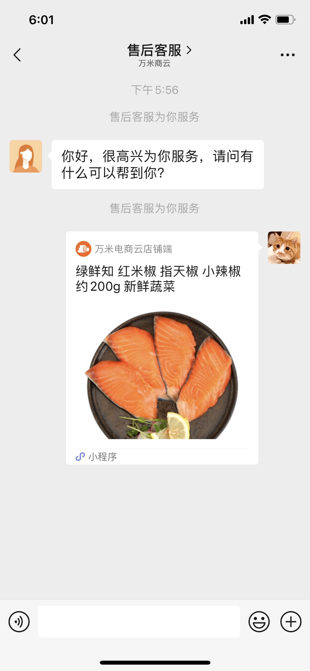 4、進入對話頁面,自動跳出你需要咨詢的商品。