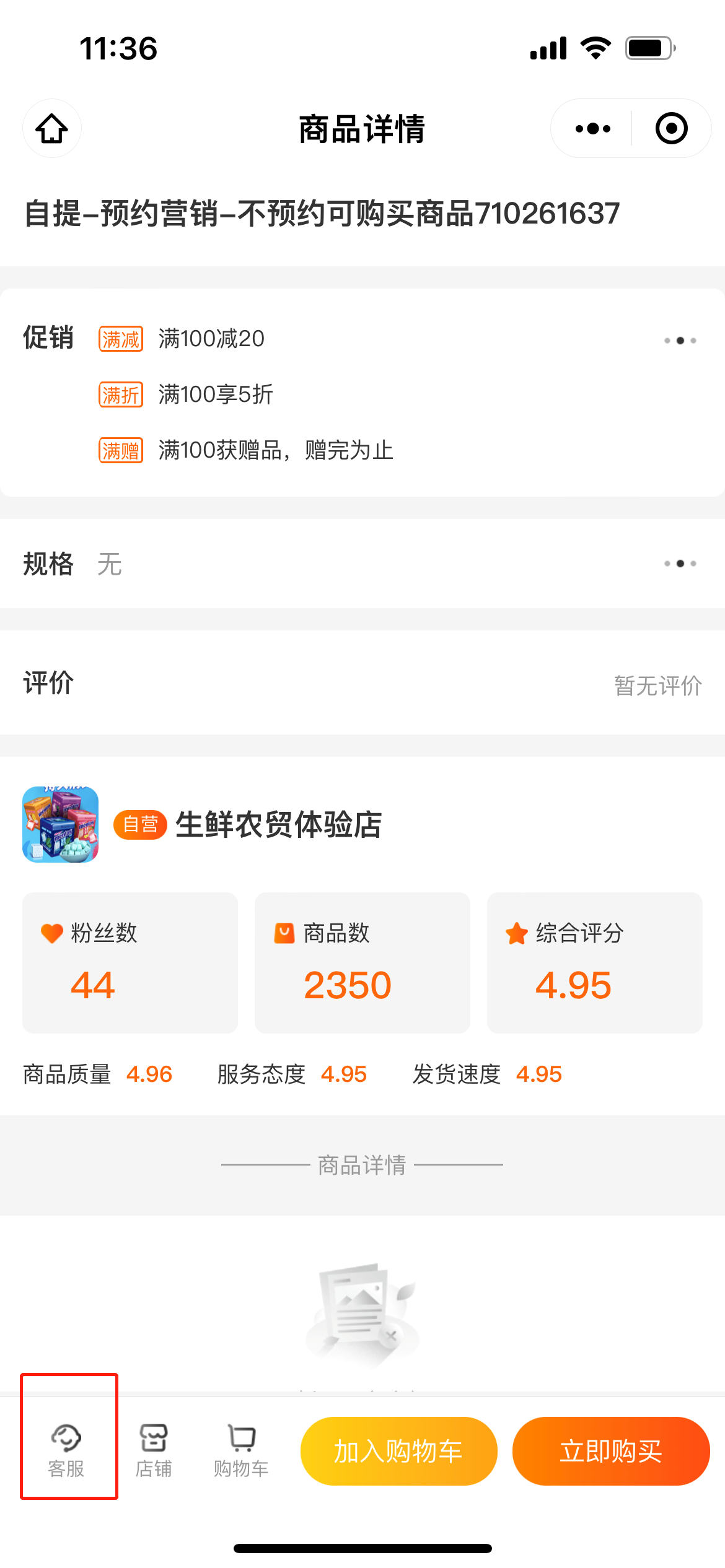 1、在萬米商城中選購商品,想要咨詢客服,在下方點擊客服按鈕。