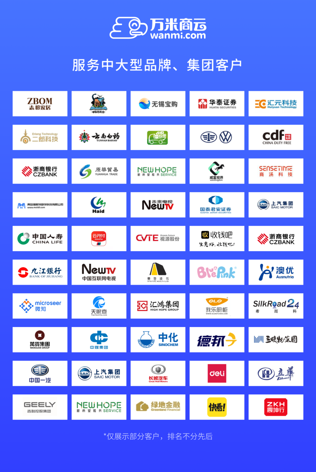 萬米商云服務了多家大型企業的數字化采購、員工福利內購等項目,接入京東VOP、LinkedMall、東方團購中心等供應鏈渠道資源,提供通聯支付和支付分賬解決方案,解決企業交易、分賬痛點,為更多企業客戶提供從供應鏈、ITꦬ到運營等一系列的解決方案。