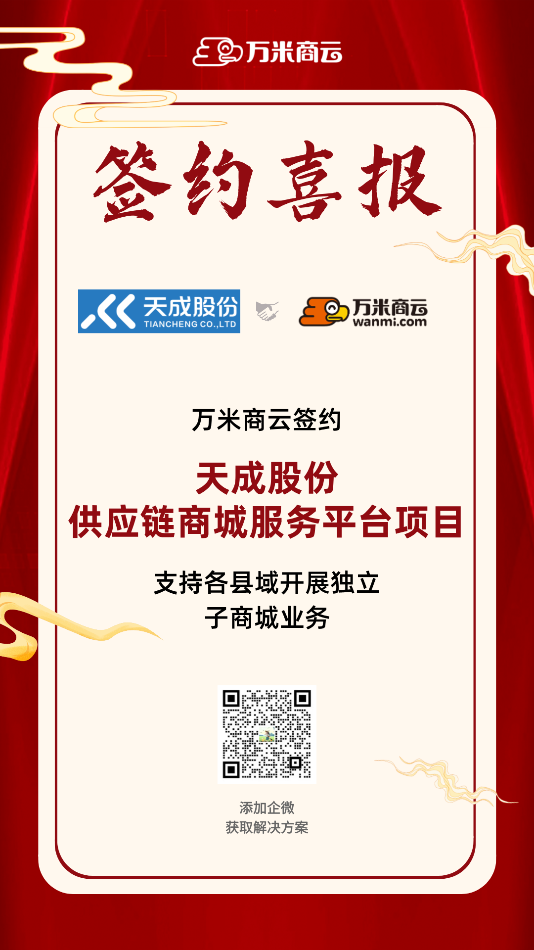 簽約喜報 | 萬米商云簽約云南天成股份,搭建供應鏈商城,為縣域賦能!