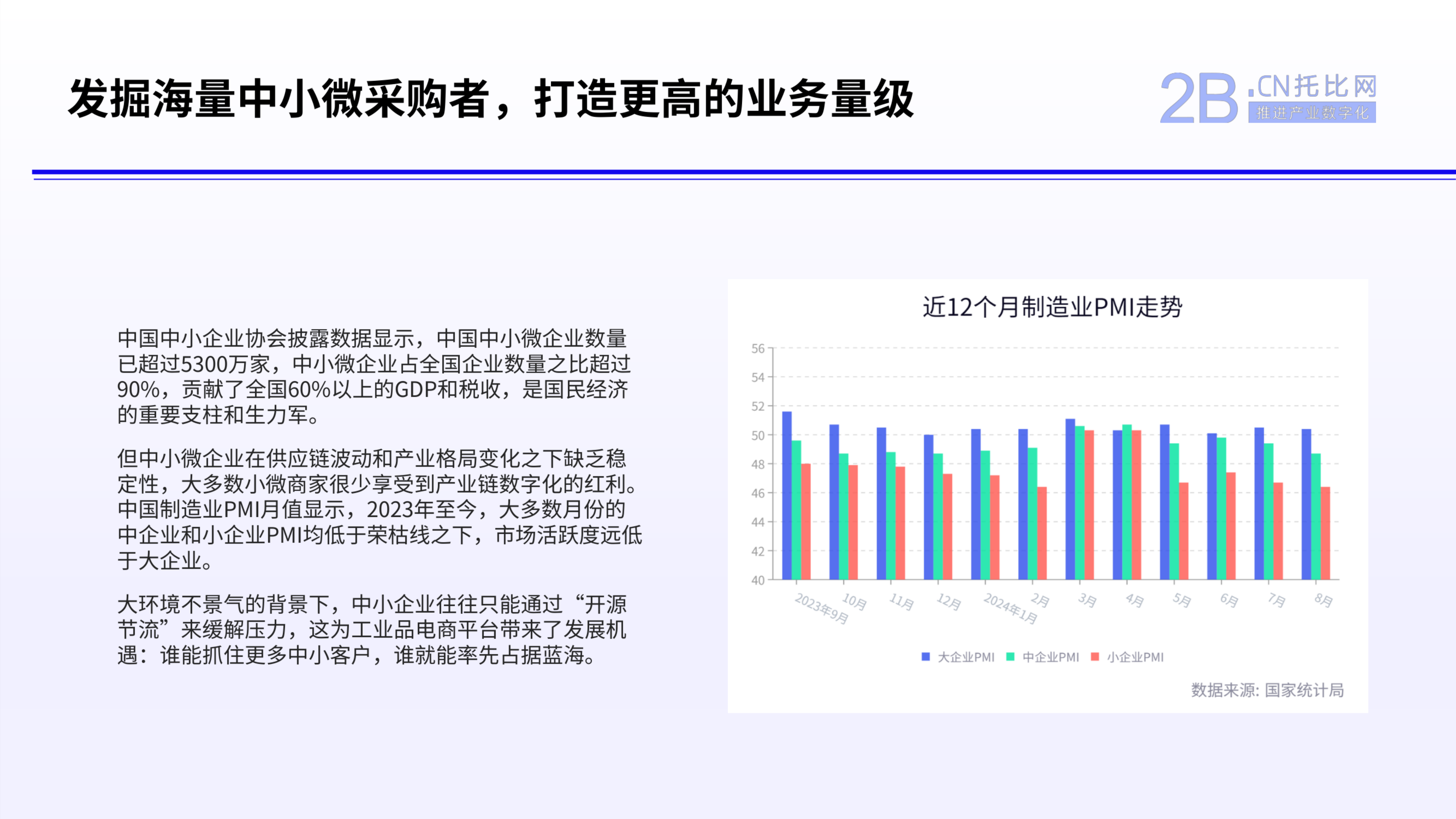 中小微企業是國民經濟的♌重要支柱和生力軍,但是在供應鏈波動和產業格局變化下缺乏穩定性,只能通過“開源節流”來緩解壓力,這為工業品電商平臺帶來了發展機遇。