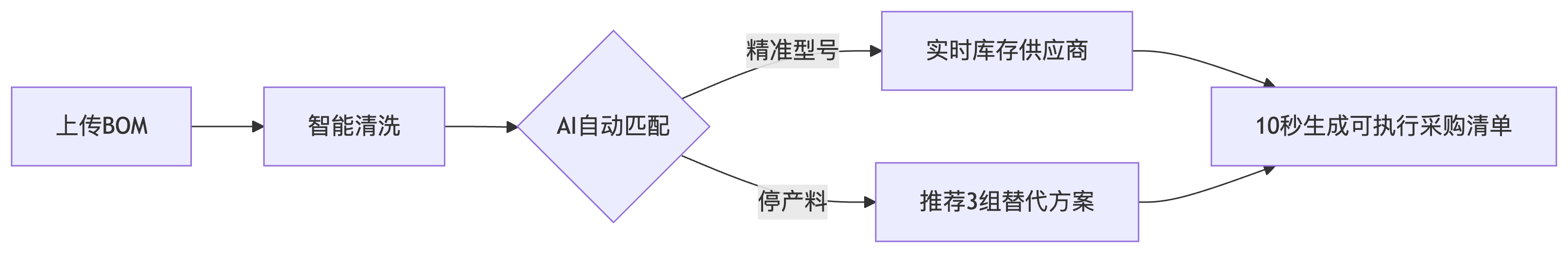 ● 接入原廠授權數據+全球分銷商實時庫存,覆蓋電阻電容、IC芯片等2500萬SKU