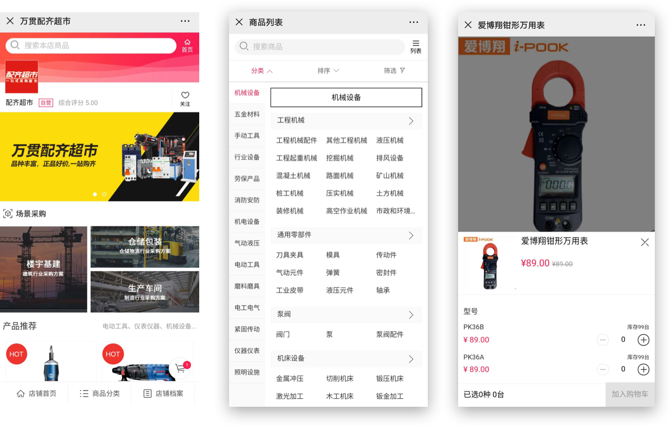 對采購商而言,萬貫匯平臺整合市場各商家,擁有全面多樣的產品組合,為采購商提供機電設備、儀器儀表、電工電氣等齊全優質的五金機電產品。前端提供微商𝄹城+小程序的采購終端,采購ꦗ商既可及時獲取商家促銷信息,又可實現隨時隨地一站式采購。