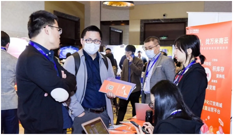 萬米商云參會人員在現場,為各企業提供電商系統及智慧零售方案咨詢服務。